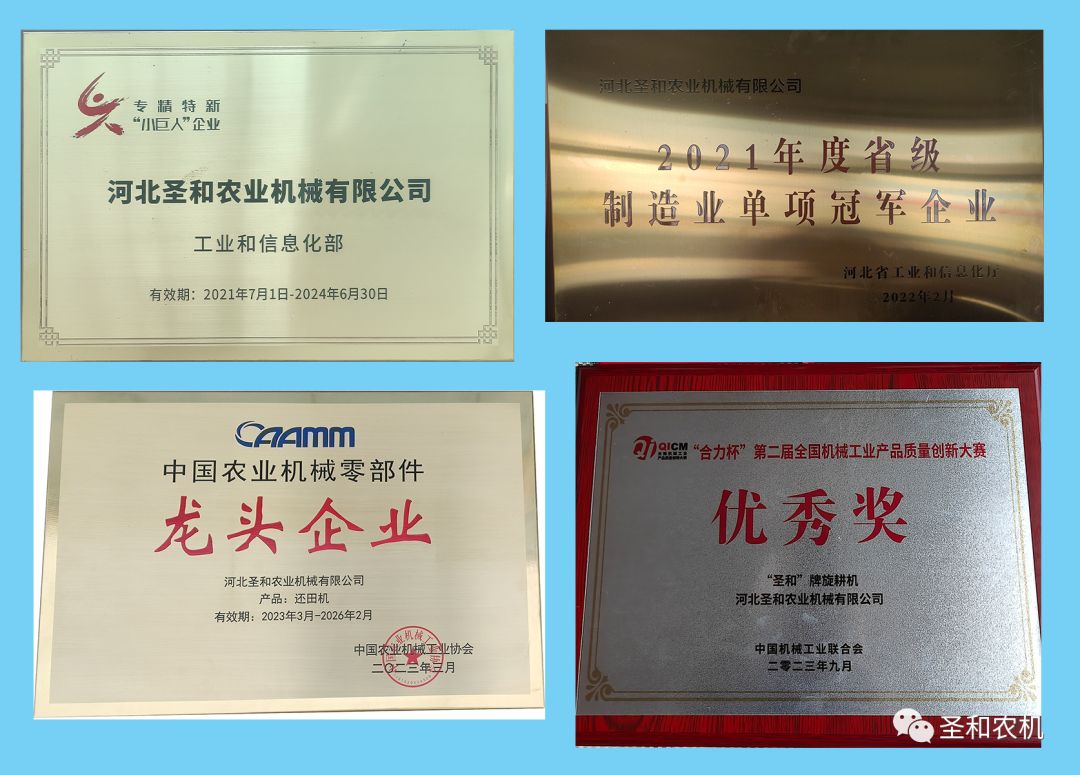 公司現(xiàn)為國(guó)家級(jí)專(zhuān)精特新“小巨人”企業(yè)、河北省“專(zhuān)精特新”示范企業(yè),省級(jí)制造業(yè)單項(xiàng)冠軍企業(yè),河北省首批縣域特色產(chǎn)業(yè)集群“領(lǐng)跑者”企業(yè)。公司擁有25項(xiàng)國(guó)家專(zhuān)利,參與制定多項(xiàng)國(guó)家標(biāo)準(zhǔn)。旗下?lián)碛?ldquo;圣和”、“普勞恩德”兩大品牌,產(chǎn)品遍布大江南北,行銷(xiāo)20多個(gè)國(guó)家和地區(qū)。其中旋耕機(jī)、還田機(jī)雙雙榮獲2022年度銷(xiāo)售冠軍,為中國(guó)耕整地機(jī)械行業(yè)的龍頭企業(yè)。