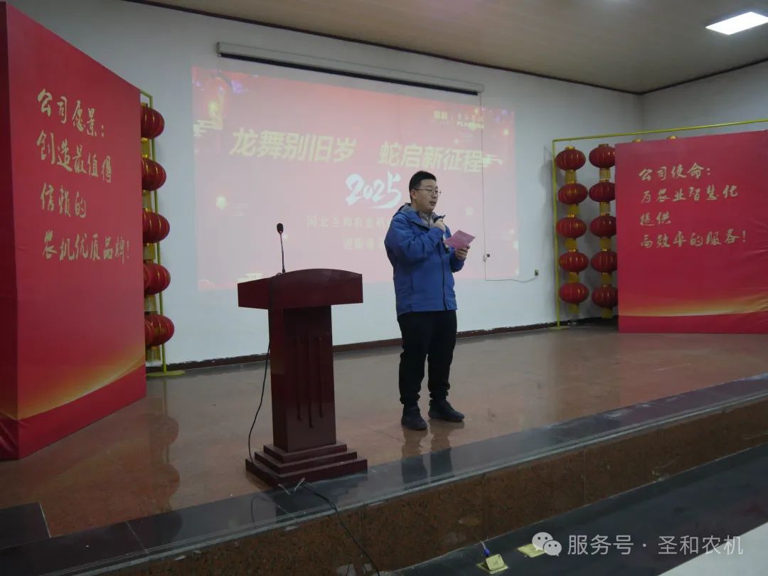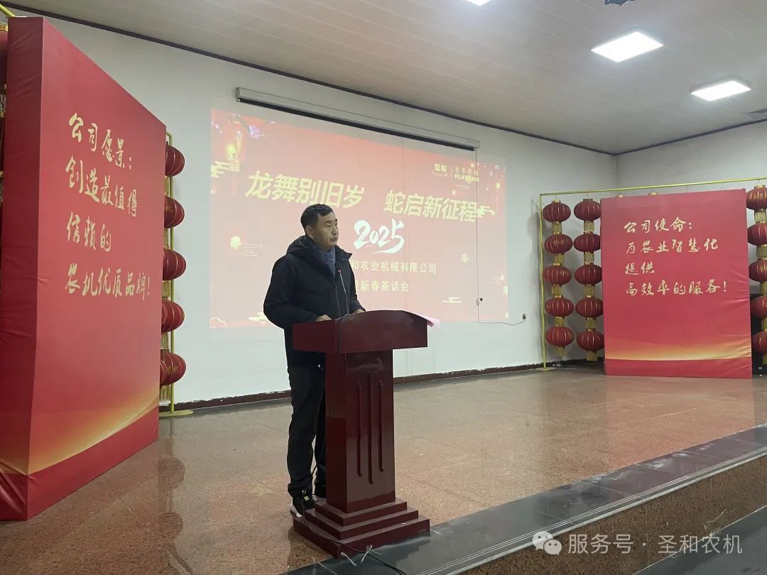 2025年1月24日,河北圣和農(nóng)業(yè)機(jī)械有限公司在公司培訓(xùn)大廳,隆重舉辦了以“龍舞別舊歲,蛇啟新征程”為主題的2025年迎春茶話會(huì)。此次茶話會(huì)旨在總結(jié)過(guò)去一年的工作成績(jī),展望新一年的發(fā)展目標(biāo),同時(shí)增進(jìn)員工之間的交流與友誼,營(yíng)造和諧融洽的企業(yè)文化氛圍。