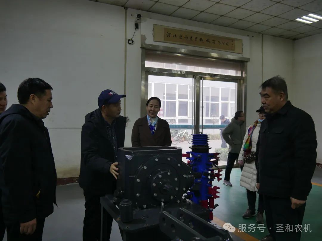 領(lǐng)導(dǎo)一行首先參觀了圣和公司展廳,詳細(xì)了解了公司產(chǎn)品研發(fā)、技術(shù)創(chuàng)新、市場(chǎng)開拓等方面的情況。王新芳董事長(zhǎng)向領(lǐng)導(dǎo)們介紹了圣和公司近年來在農(nóng)業(yè)機(jī)械領(lǐng)域取得的成就,并重點(diǎn)展示了公司自主研發(fā)的特高箱旋耕機(jī)等新式農(nóng)機(jī)裝備。領(lǐng)導(dǎo)們對(duì)圣和公司堅(jiān)持科技創(chuàng)新、推動(dòng)農(nóng)業(yè)機(jī)械化發(fā)展取得的成績(jī)給予了高度評(píng)價(jià)。