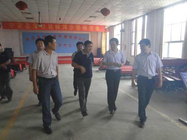 河北寧晉縣人大副主任郝晨鎖、鎮(zhèn)長宋瑞剛等領導一同來我司調(diào)研工作,圣和董事長王新芳就廠部規(guī)模建設、工作生活情況進行了詳細講解,郝晨鎖副主任對我司發(fā)展、產(chǎn)品及工作情況給予充分肯定,并希望我司再接再厲,促進農(nóng)業(yè)機械再上新臺階。