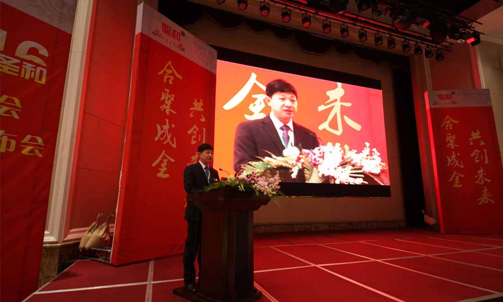 河北圣和董事長王新芳首先為大會做主題為“合聚成金、共創(chuàng)未來”的致辭。他表示,過去的十年,圣和公司面對充滿競爭激烈的市場環(huán)境,以追求穩(wěn)健增長為目標(biāo),順應(yīng)市場經(jīng)濟(jì)發(fā)展形勢,以創(chuàng)新發(fā)展觀為導(dǎo)向,堅持以人為本,大力開展企業(yè)文化建設(shè),形成公司與經(jīng)銷商、供應(yīng)商、終端客戶多贏的良好局面,促進(jìn)了公司的健康發(fā)展。公司自2015 年起,制定了5-10年的中長期戰(zhàn)略發(fā)展規(guī)劃,2015年,公司在行業(yè)形勢發(fā)展嚴(yán)峻的形勢下,取得了較好的經(jīng)營業(yè)績,實現(xiàn)了五年創(chuàng)新發(fā)展的開門紅,成為國內(nèi)旋耕機(jī)和秸稈還田機(jī)領(lǐng)域的領(lǐng)頭企業(yè)。