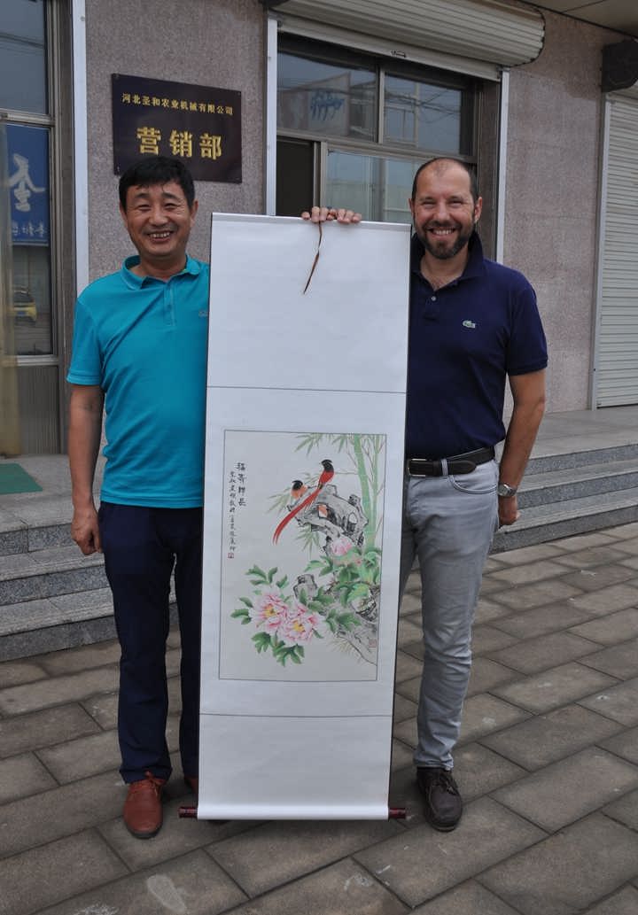 下午在董事長王新芳與總經(jīng)理師西峰陪同下觀看了企業(yè)宣傳片,隨后參觀了生產(chǎn)現(xiàn)場(chǎng),菲利普先生在參觀過程中時(shí)時(shí)拿出手機(jī)不停地照相并對(duì)圣和的管理以及發(fā)展表示驚嘆,一個(gè)農(nóng)機(jī)企業(yè)可以做到這些真的很不容易,王總詳細(xì)講解了產(chǎn)品制作過程和現(xiàn)在設(shè)備的先進(jìn)性,從自動(dòng)化焊接、數(shù)控折彎、大型壓力機(jī)到激光切割機(jī)、智能化噴涂線、國際先進(jìn)的流水組裝線,圣和公司一步步依靠實(shí)力和技術(shù)手段,不斷地提高產(chǎn)品質(zhì)量,升級(jí)產(chǎn)品技術(shù),提高行業(yè)市場(chǎng)競爭力,夯實(shí)產(chǎn)品品質(zhì)和研發(fā)新產(chǎn)品!近年來在不斷進(jìn)取的努力下,圣和產(chǎn)品不斷地改變過去傳統(tǒng)的制作流程和銷售模式,與德國普勞恩德PLAUERN(河北)農(nóng)業(yè)機(jī)械有限公司合作,技術(shù)資源共享,在產(chǎn)品品質(zhì)和質(zhì)量上上了一個(gè)很大的臺(tái)階,特別是散件組裝產(chǎn)品的生產(chǎn)和技術(shù)打破傳統(tǒng),引領(lǐng)行業(yè),早已成為業(yè)內(nèi)佳話。菲利普先生與鐘振修先生紛紛表示圣和的實(shí)力著實(shí)令人驚嘆,他們也和王總一樣有著共同的信仰,圣和十年的快速發(fā)展,用很短的時(shí)間是很難體會(huì)的,正是圣和用心做事的風(fēng)范,圣和員工的認(rèn)真負(fù)責(zé),對(duì)工作的認(rèn)真態(tài)度和標(biāo)準(zhǔn)化的準(zhǔn)則保證著各個(gè)生產(chǎn)線線線相接,這在一般企業(yè)是很難看到的,也是少有的,愿與圣和建立更進(jìn)一步的交流與合作。王總表示道:今后圣和公司也會(huì)更好地立足、緊貼中國農(nóng)機(jī)市場(chǎng),高效開發(fā)適應(yīng)中國差異化的優(yōu)質(zhì)農(nóng)業(yè)機(jī)械、快速應(yīng)對(duì)客戶需求,以優(yōu)良的品質(zhì)、合理的價(jià)格、良好的信譽(yù)、完善的服務(wù),不斷創(chuàng)造和研發(fā)實(shí)用性強(qiáng)的新產(chǎn)品,為促進(jìn)中國農(nóng)業(yè)進(jìn)一步發(fā)展,夯實(shí)基礎(chǔ),服務(wù)三農(nóng)!最后雙方在非常愉快友好的氛圍下達(dá)成了初步合作意向,董事長王新芳臨別贈(zèng)送了菲利普先生和鐘振修先生具有中國特色的工筆畫表示圣和對(duì)菲利普先生的熱情歡迎。