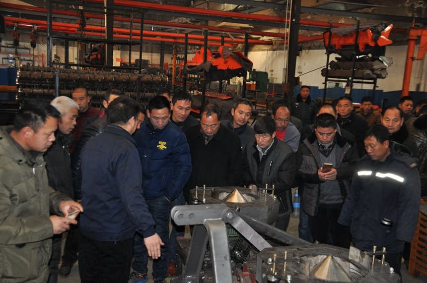 在裝配車間的旋耕機(jī)和打漿機(jī)裝配流水線旁,學(xué)員們對裝配工藝同樣饒有興趣。尤其是看到旋耕機(jī)刀片在出廠前已經(jīng)裝配完善,學(xué)員們表示贊揚。在過去,為了方便運輸,刀片是在經(jīng)銷商那里裝配的,往往容易出現(xiàn)錯裝刀片,螺栓緊固不合格等問題!在參觀到圣和公司的成品倉庫時,學(xué)員們仿佛來到旋耕機(jī)的海洋,工作人員介紹說,圣和公司為適應(yīng)全國市場需要,在產(chǎn)的產(chǎn)品就有200多種,多數(shù)型號的產(chǎn)品都能做到隨時供貨。學(xué)員們被不同顏色和型號的產(chǎn)品深深吸引著,無不驚訝無比,并在此合影留念,記錄這次非凡之旅!