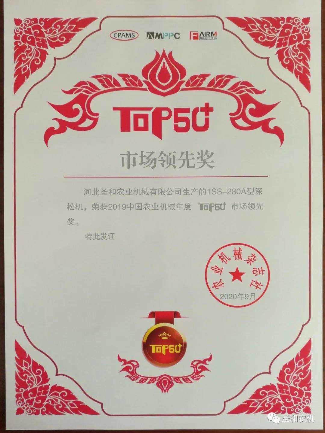 9月27日,由農(nóng)業(yè)機械雜志社主辦的2020年第八屆中國農(nóng)機高端論壇(CAIF 2020)暨 2019 中國農(nóng)業(yè)機械年度 TOP50+頒獎盛典”在北京舉辦。大會期間圣和公司產(chǎn)品1SS-280A型深松機榮獲“市場領(lǐng)先獎”,公司首席農(nóng)機農(nóng)藝專家張培增先生到會領(lǐng)獎并參加論壇!