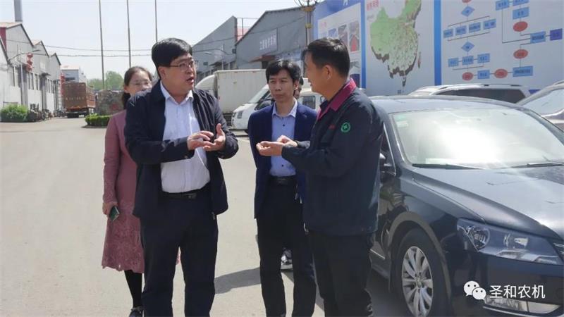 2021年4月14日,寧晉縣委常委、組織部部長孫曉磊一行蒞臨圣和調(diào)研,大陸村鎮(zhèn)黨委書記王軍輝等領(lǐng)導(dǎo)陪同考察!公司董事長王新芳熱情接待!