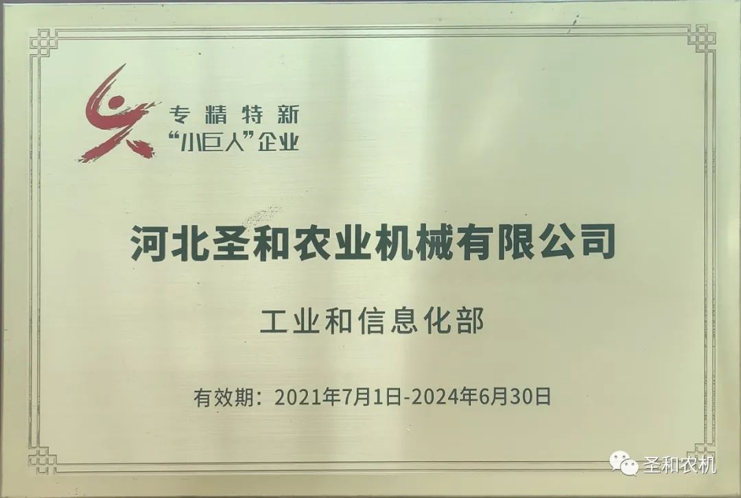 ●2022年,河北省工業(yè)和信息化廳,公布了河北省首批縣域特色產(chǎn)業(yè)集群“領(lǐng)跑者”企業(yè)名單,河北圣和農(nóng)業(yè)機械有限公司入選。