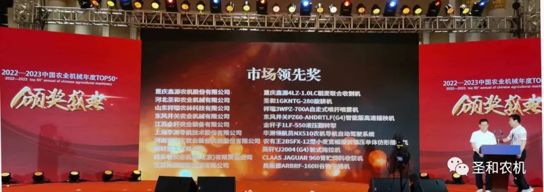 昨日,喜報又傳,在由中國農(nóng)業(yè)機械工業(yè)協(xié)會、中國農(nóng)業(yè)機械學(xué)會、《農(nóng)業(yè)機械》雜志社共同舉辦的第十一屆中國農(nóng)業(yè)機械高端論壇暨2023中國農(nóng)業(yè)機械年度TOP50+頒獎典禮上,河北圣和農(nóng)業(yè)機械有限公司在連續(xù)多年獲得TOP50+年度大獎的基礎(chǔ)上,“圣和1GKNTG-280旋耕機”憑借遙遙領(lǐng)先的市場表現(xiàn)與客戶高度認可的可靠品質(zhì),實力加冕最具重量級獎項——“市場領(lǐng)先獎”,充分彰顯了圣和旋耕機家族的冠軍實力,行業(yè)地位再獲認可。